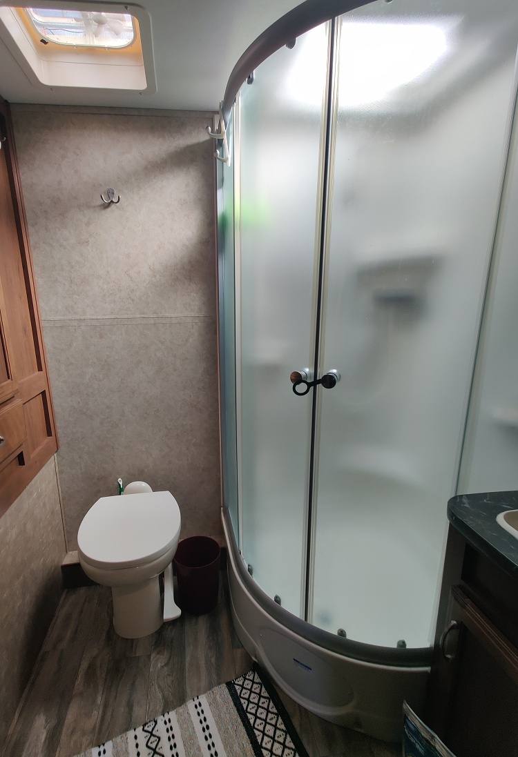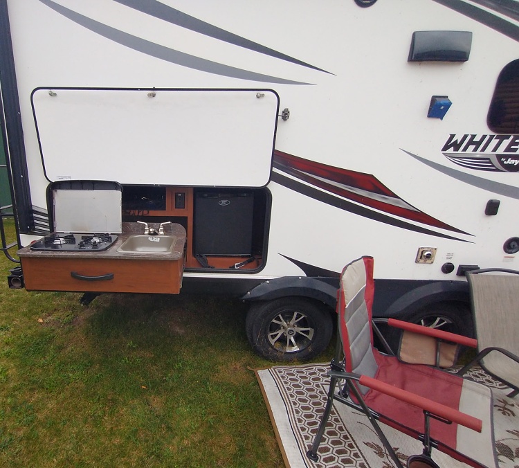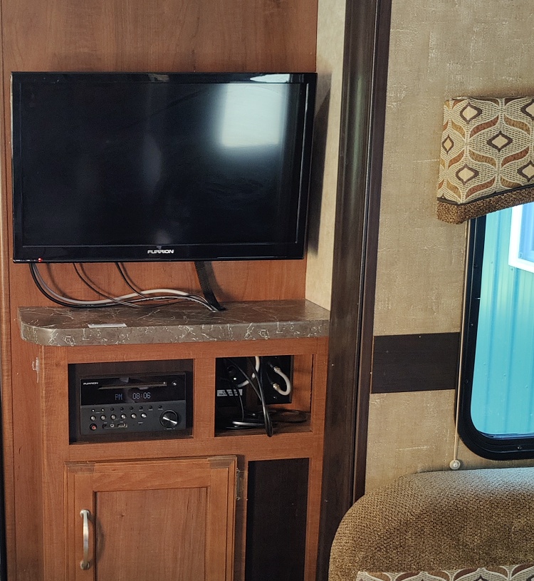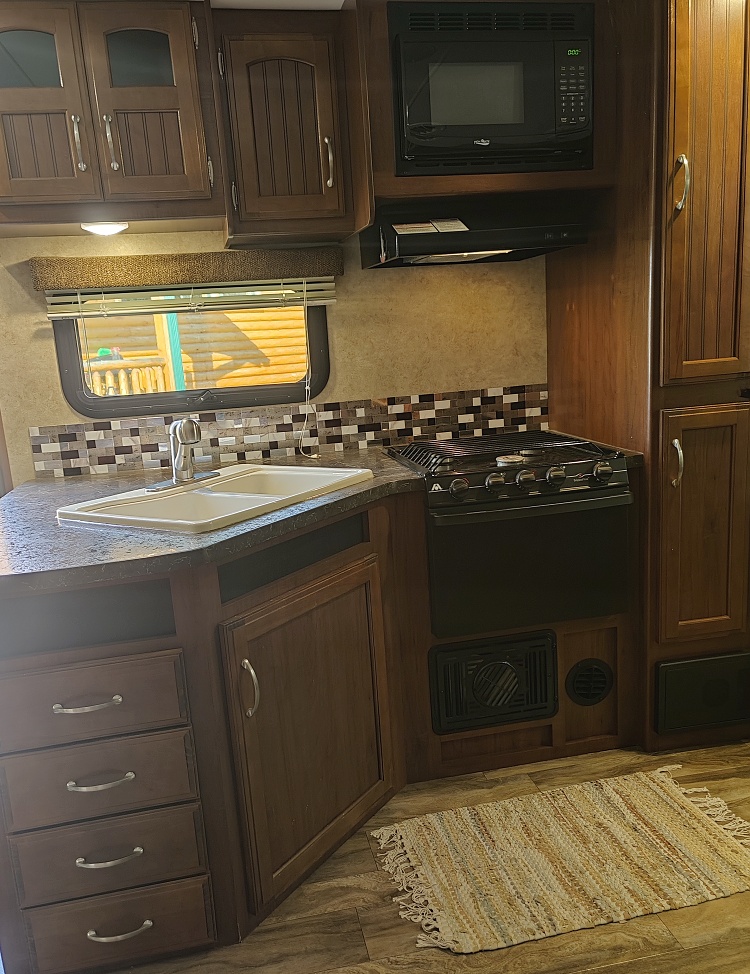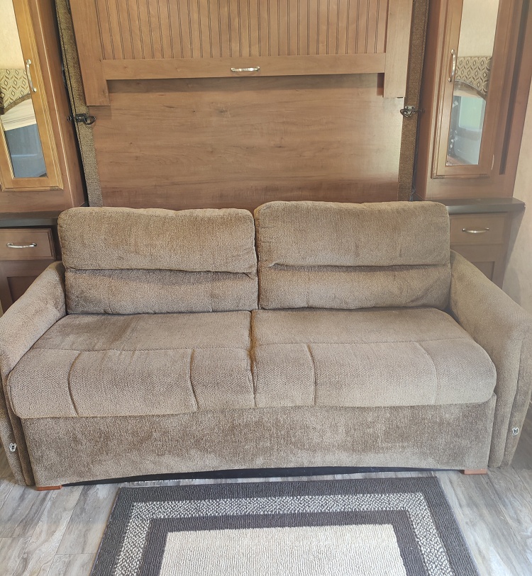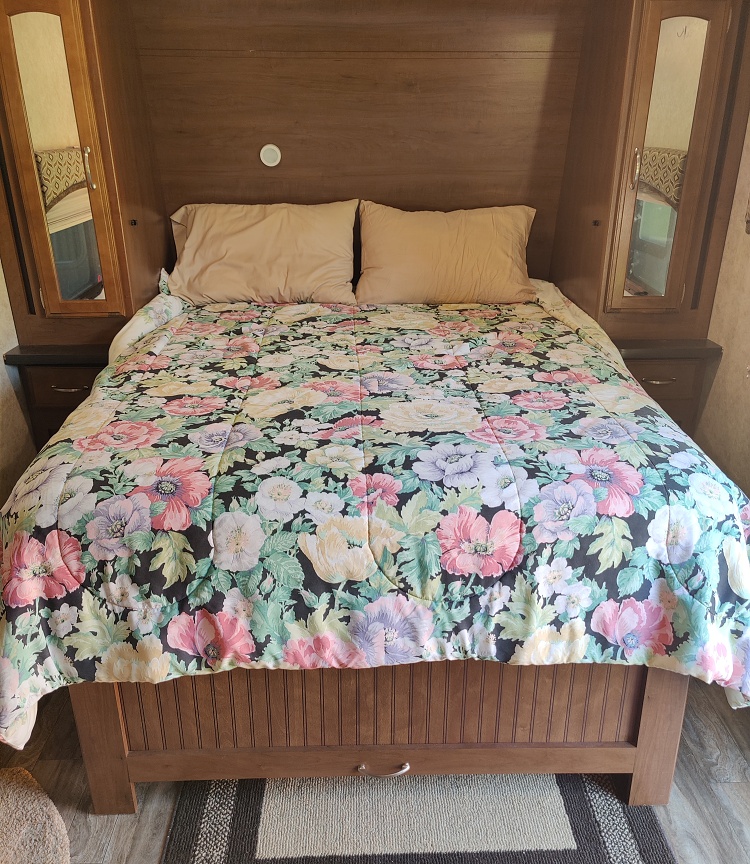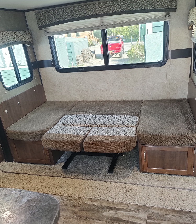is a clean camper with a queen bed. The fold-down couch will sleep another two people - bring sleeping bags and pillows! Bring towels and bed linens. |